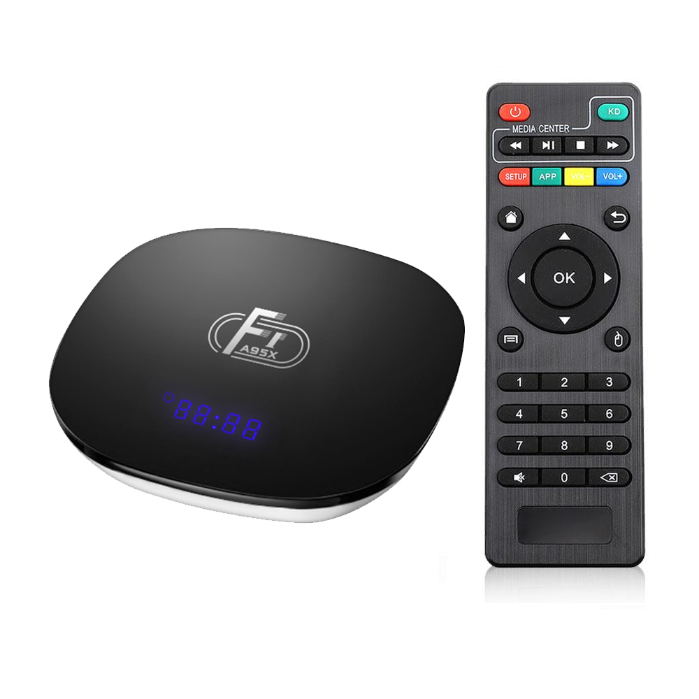 Highlights Android 7.1 A95X F1 is based on the Android 7.1 OS, with high speed and smooth, designed to turn your regular TV into a smart one. Amlogic S905W The processor in this chip is an Amlogic S905W, fully supporting premium 4K UHD contents with a powerful 64bit CPU and Mali-450 penta core GPU combination in place to handle 4K graphics and offers strikingly realistic pictures. DDR3 2GB + eMMC 16GB It uses a DDR3 2GB and an eMMC 16GB for better performance, security and reliability. True 4K Media Player While your average media box might only accept 1080P video playback, this gadget plays just about any 4K source. Access to KODI 17.6 and More Like any Android based media players, it brings, aside from the preinstalled KODI 17.6, full access to Google Play Store apps like Netflix, Vudu, Skype, Picasa, Flicker, Youtube, Facebook, etc. Specification General Model: A95X F1 Type: TV Box Hardware OS: Android 7.1 CPU: Amlogic S905W GPU: Quad Core Mali-450 RAM: 2GB DDR3 ROM: 16GB eMMC Communication WiFi: 2.4G WiFi LAN: 100M Media Decoder Format: H.265 Video format: 4K x 2K Audio format: AAC Photo Format: BMP Support 5.1 Surround Sound Output: Yes Interface DC 5V, HDMI, LAN, TF card, USB, OPTICAL, AV Other Features HDMI Version: 2.0 HDMI Function: CEC System Bit: 64Bit System Activation: Yes Language: Multi-language Antenna: Yes DVD Support: Yes Other Functions: DLNA Remote Controller Battery: 2 x AAA Battery ( not included ) Power Power Type: External Power Adapter Mode Dimensions&Weight Product weight: 0.1500 kg Package weight: 0.4000kg Product size (L x W x H): 10.00 x 10.00 x 1.75 cm / 3.94 x 3.94 x 0.69 inches Package size (L x W x H): 18.50 x 12.50 x 4.80 cm / 7.28 x 4.92 x 1.89 inches Package Contents 1 x TV Box 1 x Remote Control 1 x HDMI Cable 1 x Power Adapter 1 x English Manual