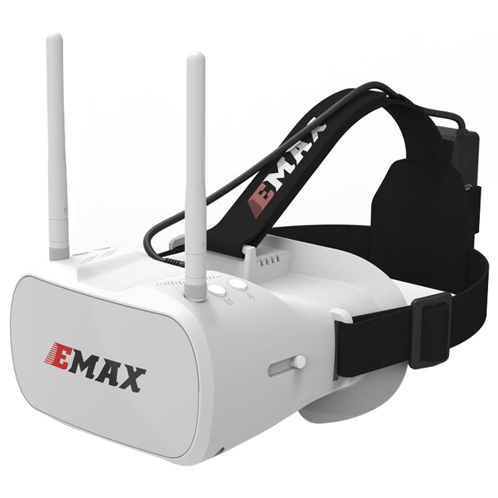 Specification General Brand: Emax Item Name: Transporter Color: White Quantity: 1set Specification Frequency: 5.8CH Channel: 48CH Size: 4.3Inch Resolution: 480 X 320 Battery: 4.2V 1800mAh  Battery Cartridge Introduction: The battery cartridge comes preinstalled with a 4.2V/1800mAh 18650 battery. If a battery reinstall is required please use caution making sure to install with the correct polarity. The battery can be charged in the cartridge with a micro USB cable. When the battery is charging the indicator light is green. The indicator light will turn red when charging is complete. Goggle Key Operation: 1. Menu button – Click to enter the menu. From the menu, you can select the brightness, contrast, saturation, language, or exit option. The menu will automatically exit after 3 seconds if there’s no input. 2. Auto Scan key – Automatically scan all 48 available video channels for the strongest signal being emitted. If you click the frequency band selection button or the frequency channel selection button during the search, it will lock at the current frequency channel. 3. Frequency band selection button – Under normal circumstances, this button can be used as the frequency band selection button to select the A/B/E/F/R/H frequency bands. After entering the menu, this button acts as the “+” button for the adjustment. 4. Frequency channel button – Under normal circumstances, this button can be used as the frequency channel button to select 1-8 frequency channels. After entering the menu, this button acts as the “-” button for the adjustment. Weight & Dimensions Product Weight: 0.322kg Package Weight: 0.54kg Product Size (L x W x H): 18.00 x 15.00 x 5.00 cm Package Size (L x W x H): 23.50 x 20.00 x 11.50 cm Package Contents 1 X FPV Goggles 1 X Battery 1 X USB Cable 1 X Manual