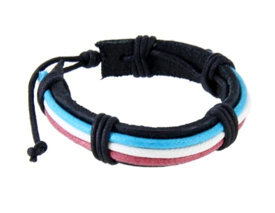 Highlights Color: Blue & White & Red Material: Faux Leather Made of three straps Suitable for both men and women Adds a stylish touch to casual outfit