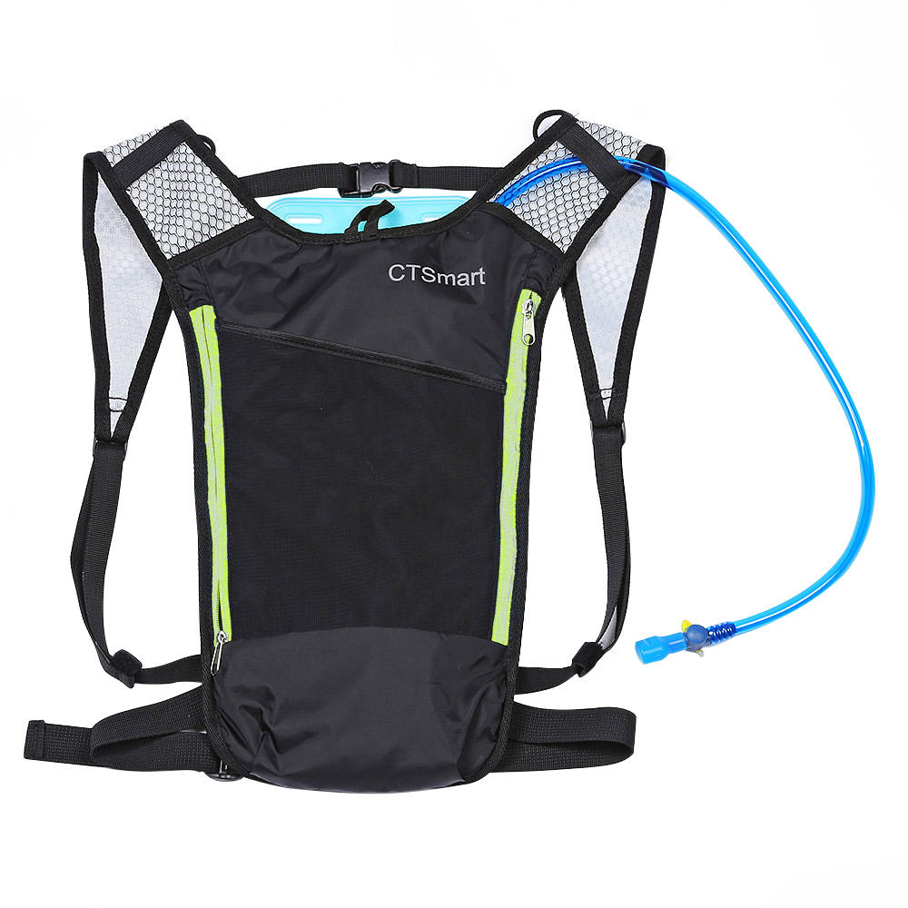 Highlights This backpack is made from high-quality nylon fabric, ultralight, and tear-resistant. It features an adjustable shoulder strap, chest strap, and waist strap to fit yourself comfortably. Thanks to the special compartment contain 2Lhydration bladder, you can carry water bladder anywhere and stay hydrated. It is a good choice for cycling, hiking, camping, and other outdoor activities. Features: 5L camping backpack, made of ultralight water-resistant and tear-resistant nylon fabric. Special compartment for containing the 2L water bag. Adjustable shoulder strap, chest strap and waist strap to fit your size. Airflow system design, keep your back cool and dry. Mesh pouches to store small items. 2 Zipper’s main pocket has a large room for you to store your clothes. Suitable for outdoor activities like cycling, camping, mountaineering, and hiking, etc. Specification General Type: Mountaineering Backpack Color: Black + Green Specification Material: Nylon + Polyester Capacity: 5L Weight & Size Product Weight: 0.35kg Package Weight: 0.36kg Product Size(L x W x H): 29 x 8 x 43cm Package Size(L x W x H): 30 x 5 x 32cm Package Contents 1 x Backpack 1 x Water Bladder