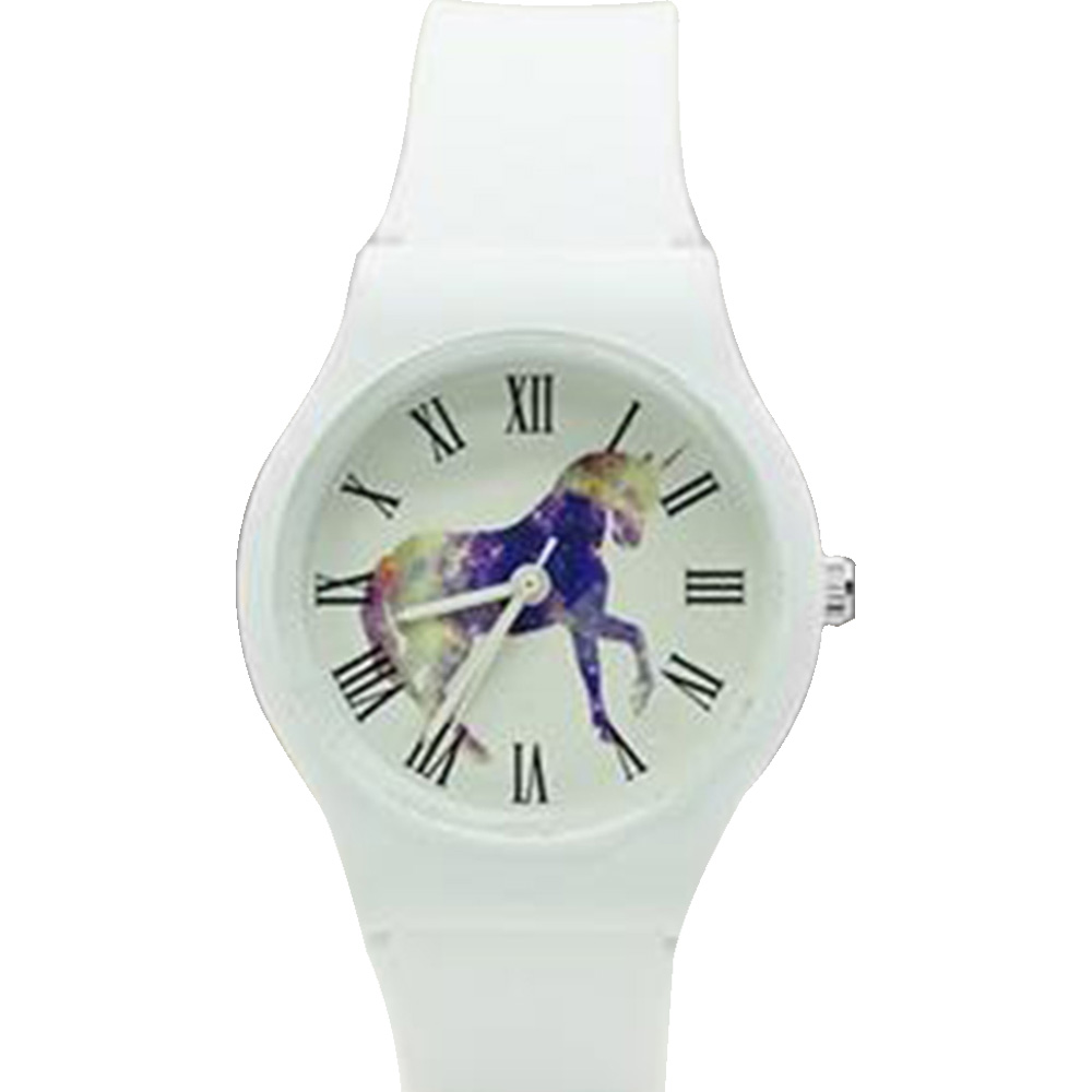 Highlights Unicorn Picture Dial and a Pure Color Strap.Made of good material, it is environmentally friendly and comfortable to wear band is designed with the Simple & Easy pattern.A good tool to teach children to learn the time correctly. Unicorn Picture Dial and a Pure Color Strap. Made of good material, it is environmentally friendly and comfortable to wear The band is designed with the Simple & Easy pattern. A good tool to teach children to learn the time correctly. Specification General short-term waterproof.Washing Hand. PC case PVC strap Case diameter 34mm Case thickness 9mm Bandwidth 17mm Strap length of 230mm Dimension & Weight Dimensions:245*34*10 Weight:39g Package Contents 1 x Watch